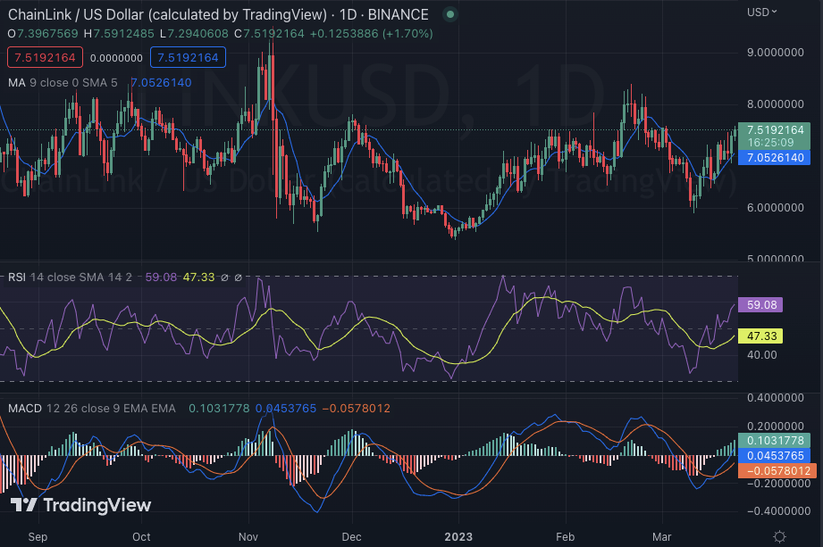 Анализ цен Chainlink показывает бычий тренд, так как за последние 24 часа был зафиксирован рост. Рынок следовал бычьему в течение последних нескольких дней, и цена значительно выросла. Пара LINK/USD выросла до $7,53 за последние 24 часа, так как все больше инвесторов проявляют интерес к токену.